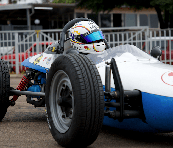 Short video with some slow motion and trendy audio, showing the driver, just before the race starts.